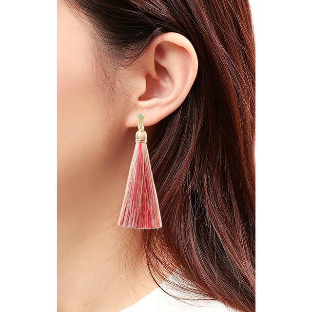 ラインストーン付きロングタッセル イヤリング ピンクミックス